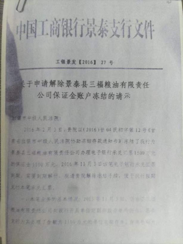 蹊跷的是,景泰三福粮油在申请破产前两年已几近停业,却仍向工行景泰支行办理了两笔大额保理贷款及一笔银行承兑汇票,累计金额高达4300万元。发放这些贷款时,公司实际控制人王平正在接受纪委审查,企业已资不抵债,保理业务中的虚假合同及贷款用途和实际资金流向也存在重大问题。